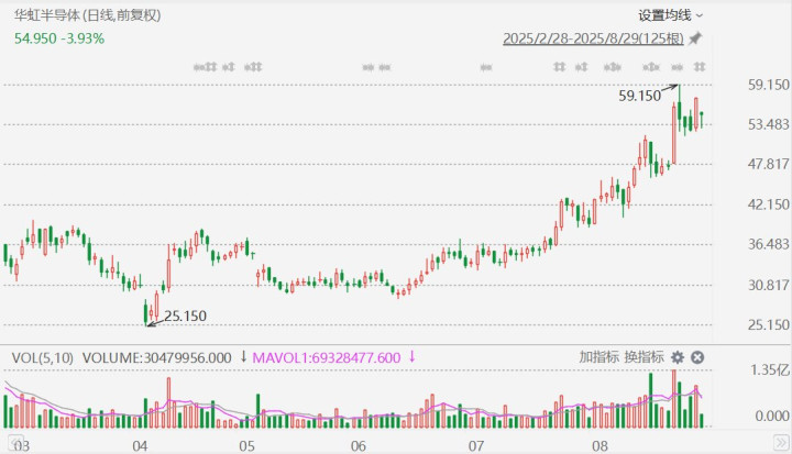 格隆汇8月29日|上半年增收不增利,华虹半导体(1347.HK)今日盘中一度跌超7%报53.05港元,截至目前成交逾16亿港元。